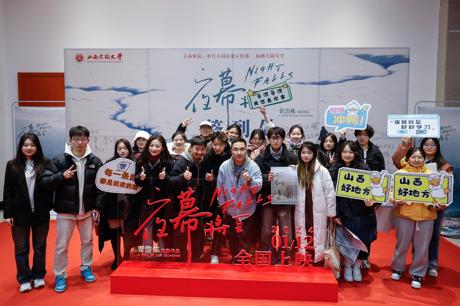 12月14日,由知名青年導演、我校煤炭工程學院2013屆畢業生菅浩棟導演的電影《夜幕將至》首映式在本真樓演播大廳舉行。菅浩棟,主演梁戟、佐菲,制片人郝葉子等影片主創人員,山西大同大學、大同市委宣傳部領導出席活動。