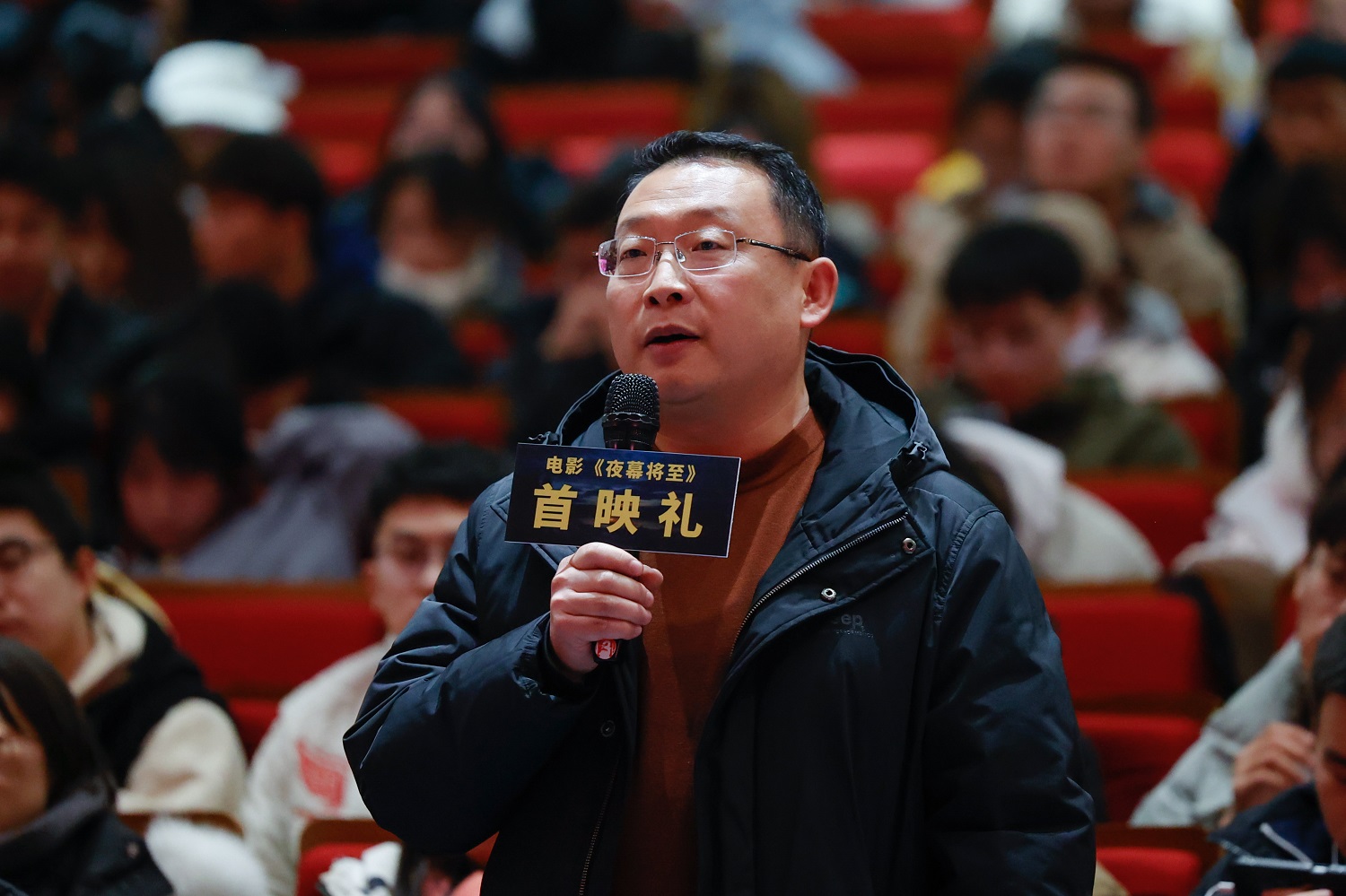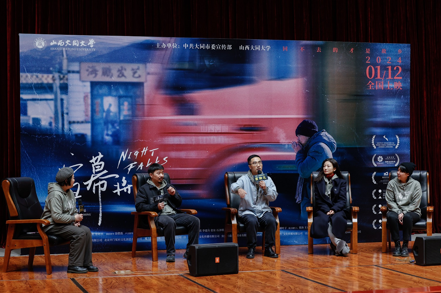 在映后交流環節,師生與影片主創團隊進行了熱烈的交流互動。“在拍攝遇到困難時,是什么樣的信念支撐您完成了創作?”“同大的求學經歷對您的成長有哪些幫助?”“您對懷揣電影夢想的青年有什么建議?”同學們踴躍發言提問,主創人員傾情互動,將現場氣氛推向高潮。師生們紛紛表示,這不僅是一次文化藝術交流,更是一次逐夢之旅,菅浩棟導演的逐夢歷程令人感動,催人奮進。菅浩棟表示,山西大同大學是自己夢想起航的地方,《夜幕將至》能夠在平遙國際電影展上大放異彩,離不開母校的培養和師長的教誨,希望學弟學妹們以“熱愛和堅持”為師,勇敢逐夢。建筑與測繪工程學院院長、時任煤炭工程學院團委書記喬元棟表示,十年一晃而過,菅浩棟在學校嘗試拍攝影片、創辦社團的奮斗歷程歷歷在目,看到他能心系母校、感恩母校,感到十分欣慰,希望他能始終秉持“厚德、博學、慎思、篤行”校訓精神,創作出更多優秀作品。