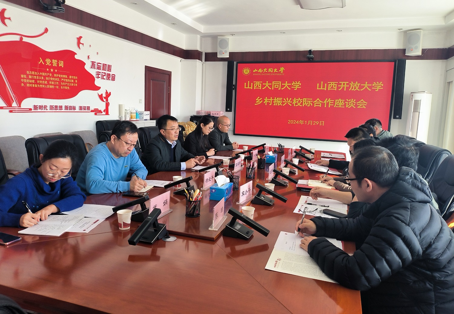 1月29日下午,山西開(kāi)放大學(xué)鄉(xiāng)村振興學(xué)院院長(zhǎng)王彤梅一行來(lái)到大同鄉(xiāng)村振興研究院,就雙方開(kāi)展鄉(xiāng)村振興校際合作進(jìn)行座談。校黨委副書記、大同鄉(xiāng)村振興研究院院長(zhǎng)寇福明出席座談會(huì)。商學(xué)院、大同鄉(xiāng)村振興研究院相關(guān)同志參加座談。