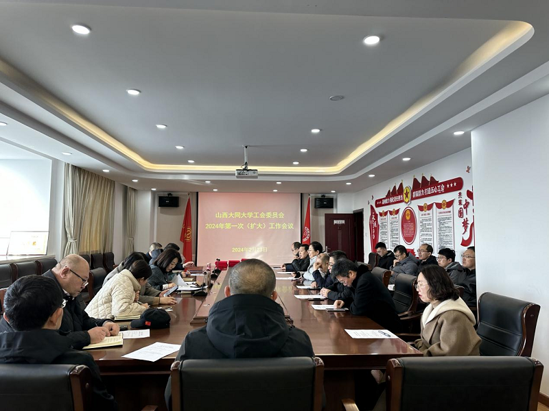 2月23日,山西大同大學(xué)工會(huì)委員會(huì)2024年第一次(擴(kuò)大)工作會(huì)議在行知樓十四層工會(huì)會(huì)議室召開,分工會(huì)主席、工會(huì)委員會(huì)委員和校工會(huì)工作人員參加會(huì)議,校工會(huì)主席侯桂蘭主持會(huì)議。