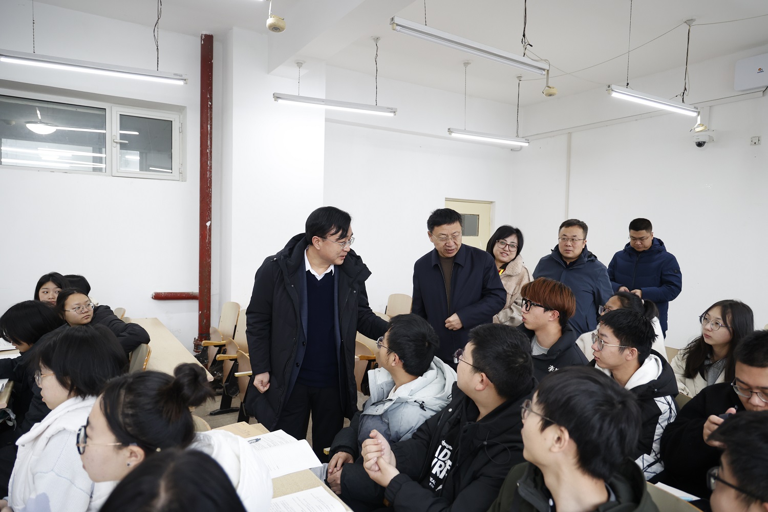 ? 在校校領導寇福明、郭繼林、張旻、史水鴻、馬軼明也同步深入各自包聯學院,與學生共聽開學第一課,并開展調研指導。(文/王麗芹、趙鑫 圖/安嘉平、余致楠)