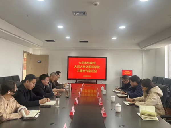 ? 為加強與大同市企事業(yè)單位交流合作,近日,外國語學院黨委書記張俊杰、院長張曉世、副院長耿小超、綜合辦公室主任曹春紅一行四人走訪了大同市檔案館。大同市檔案館館長魏向東、副館長白錦文、王強及各部門科長接待學院一行人到訪。