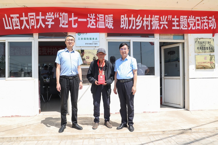 6月27日,校黨委書記趙水民,校黨委常委、副校長史水鴻來到陽高縣鎮門堡村,同陽高縣委副書記、統戰部部長韓翔一起,為“光榮在黨50年”老黨員薛志宏頒發紀念章,為老黨員、監測戶代表送去慰問,入戶走訪慰問幫扶對象,并調研鄉村振興工作。