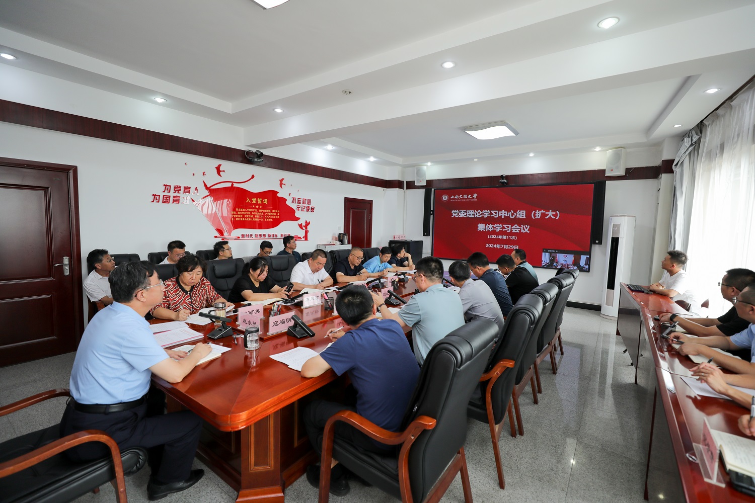 ? 7月29日,校黨委理論學習中心組召開集體學習(擴大)會議,專題學習黨的二十屆三中全會精神。校黨委書記趙水民主持。