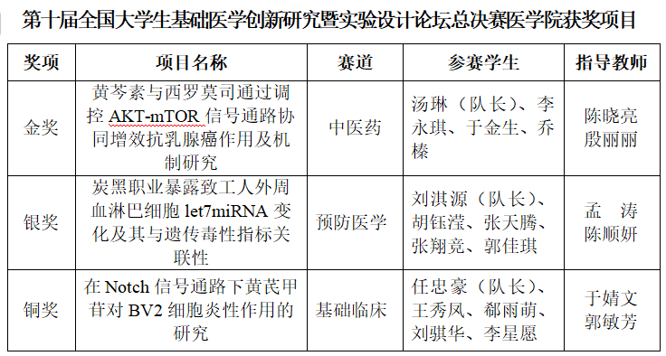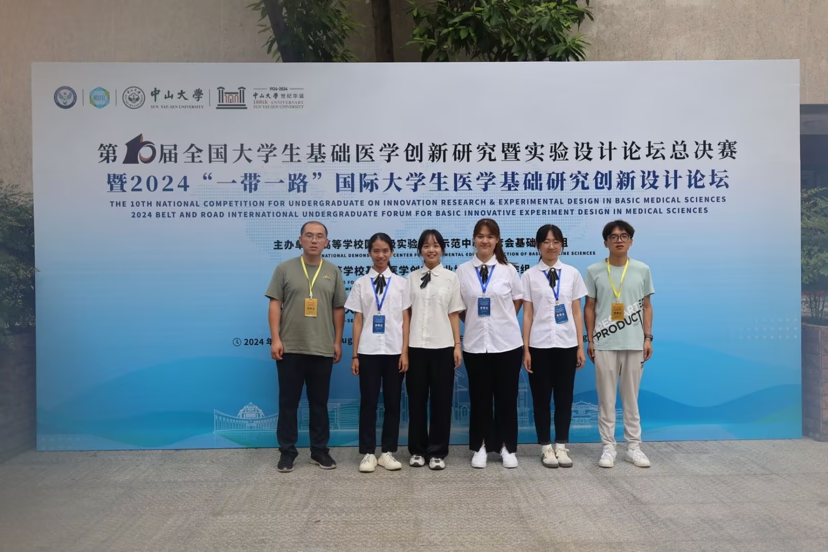 該項賽事是我國基礎醫學領域最高級別的學生學科競賽,是教育部發布的《全國普通高校大學生競賽分析報告》目錄之一。本屆大賽歷經11月余,校賽階段覆蓋了全國約250所高校4萬余名學生,參賽規模空前。總決賽在中山大學舉辦,共有814支國內隊伍,62支國際隊伍,共計3328人線下參賽。大賽共決出金獎174項、銀獎270項、銅獎448項。本屆賽事自啟動以來,在學校高度重視和大力支持下,醫學部、醫學院統籌規劃、科學部署,對各參賽項目進行多次指導和演練。參賽隊伍在教師的指導下利用課余時間,認真開展研究工作,反復驗證研究結果,積極準備匯報答辯。經過校賽18支隊伍(90余人)、區賽12支隊伍的層層選拔,我校的3支隊伍脫穎而出進入全國總決賽。