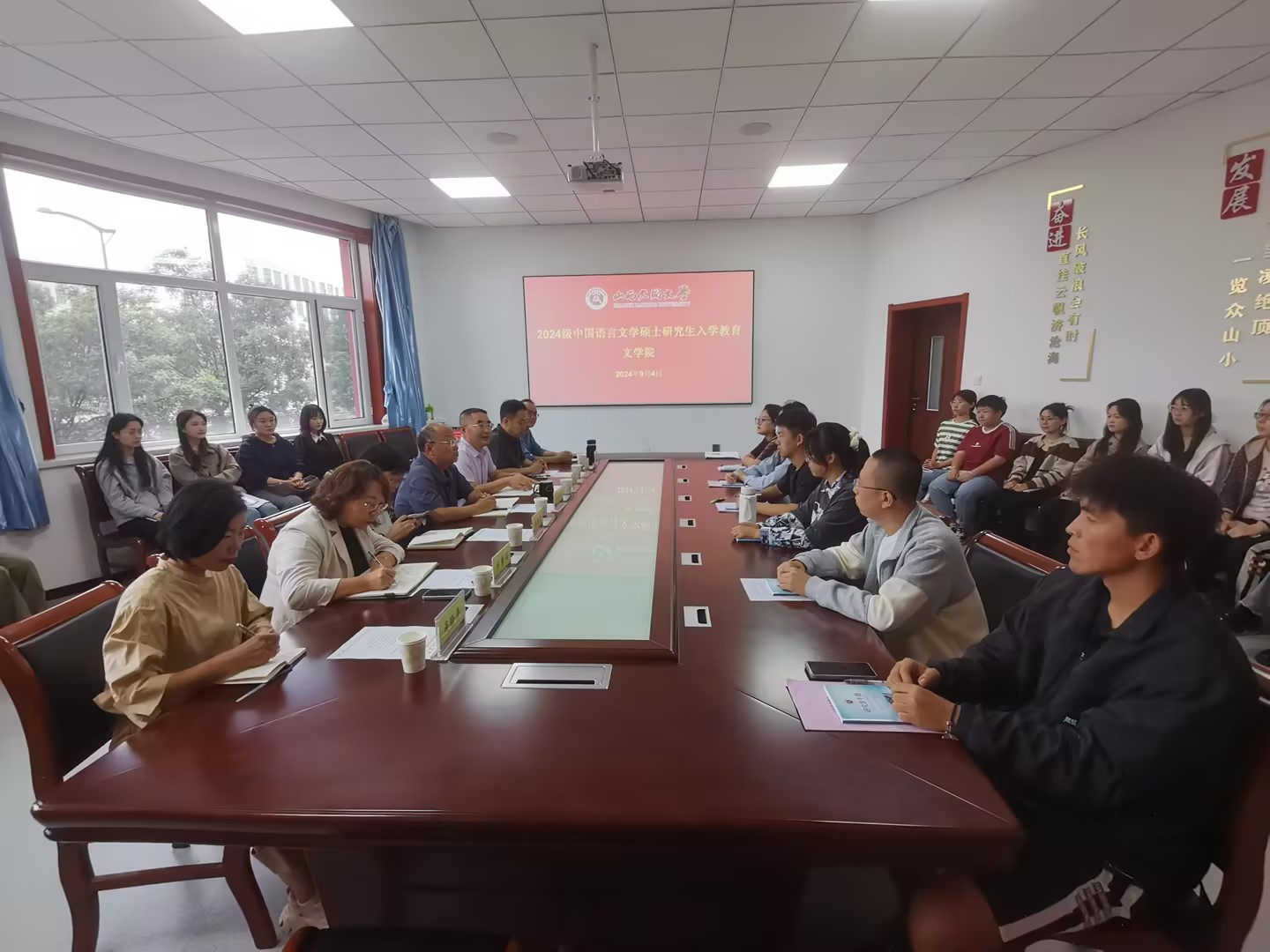 9月4日,文學院在致知樓二層會議室開展2024級中國語言文學碩士研究生入學教育,重點圍繞理想信念教育、學術素養提升、安全意識樹立、校園文化融入等方面進行。學院領導班子成員、輔導員以及2024級碩士研究生參加,副院長徐建國主持。