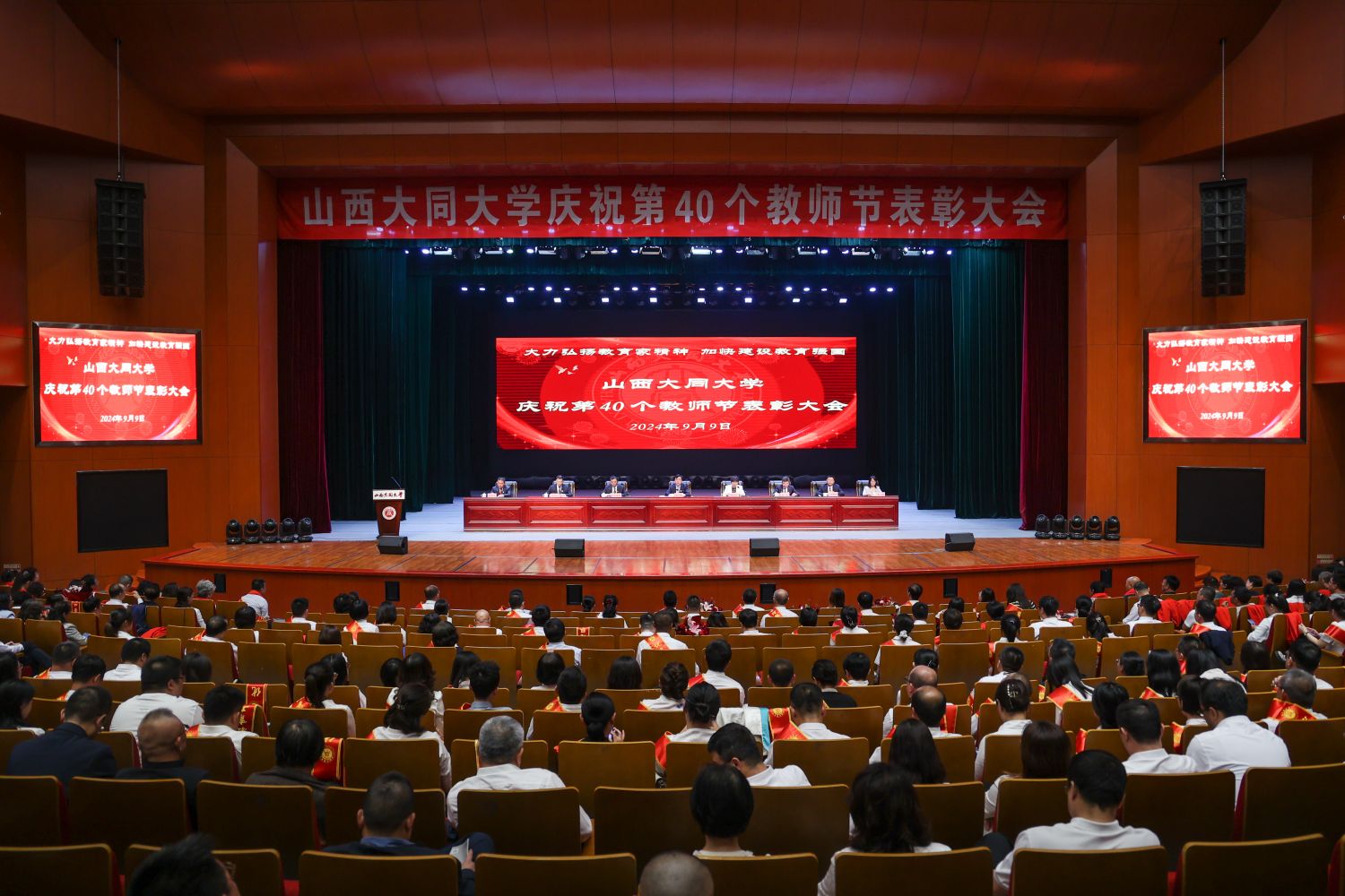 ?? 弘揚教育家精神,共筑教育強國夢。9月9日,山西大同大學2024年教師節(jié)慶祝表彰大會在本真樓演播廳隆重召開,共同慶祝第40個教師節(jié)。校黨委書記趙水民出席大會并講話。校黨委副書記、校長姚麗英主持大會。