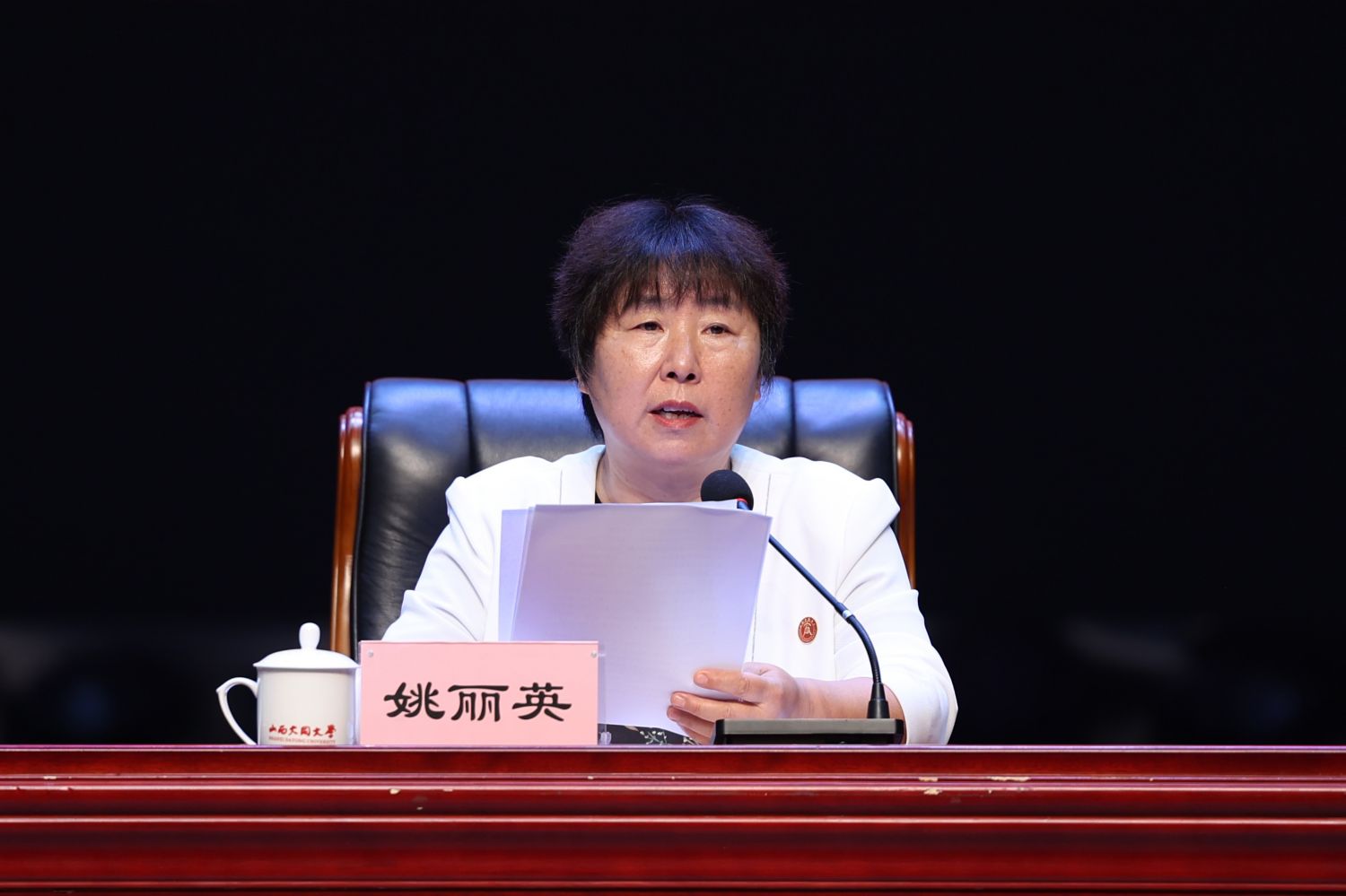 校黨委副書記、校長姚麗英主持大會