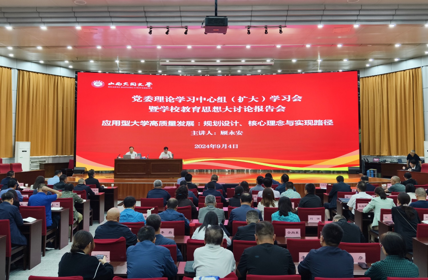 9月4日,校黨委理論學習中心組學習(擴大)會議暨學校教育思想大討論首場報告會在慎思樓報告廳召開。我校戰略發展顧問顧永安教授作題為“應用型大學高質量發展:規劃設計、核心理念與實現路徑”的專題報告。校黨委書記趙水民主持會議并作學校教育思想大討論動員。