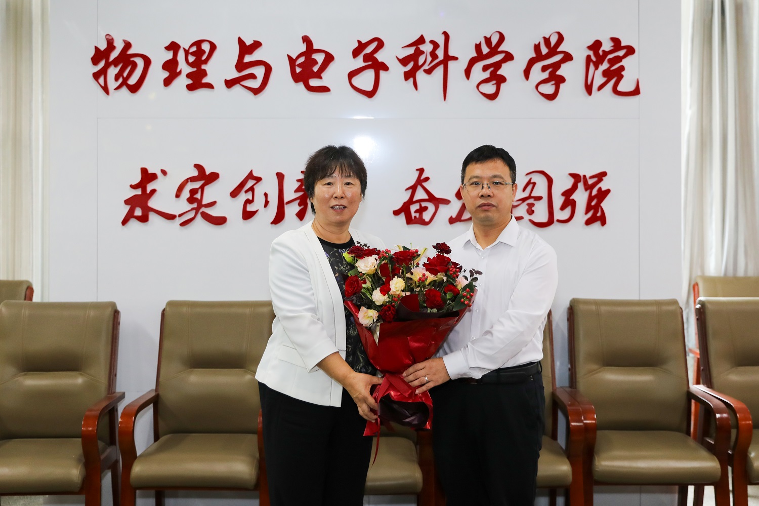 校黨委副書記、校長姚麗英先后來到物理與電子科學學院、化學與化工學院、煤基生態碳匯技術教育部工程研究中心、教務部等,走訪慰問山西省2023年度科學技術獎自然科學獎二等獎獲得者李懷繁教授、2024年度山西省高校青年教師教學競賽理科組二等獎獲得者李彩琴老師、省農業重點技術攻關項目獲得者喬俊教授以及2023年山西省教學成果二等獎獲得者段彪瑞教授,對他們在教學改革、課程開發、科學研究等方面所做的努力表示充分肯定,并就學科建設、隊伍建設等進行了深入交流。姚麗英表示,學校高度重視教師隊伍建設,將持續搭建多元平臺,提高保障水平,為教師全身心投入教學科研營造良好氛圍、創造良好條件。希望教師們爭做教育家精神的弘揚者、踐行者,不忘師者初心,堅守教育情懷,為學校的教育事業作出更大的貢獻。