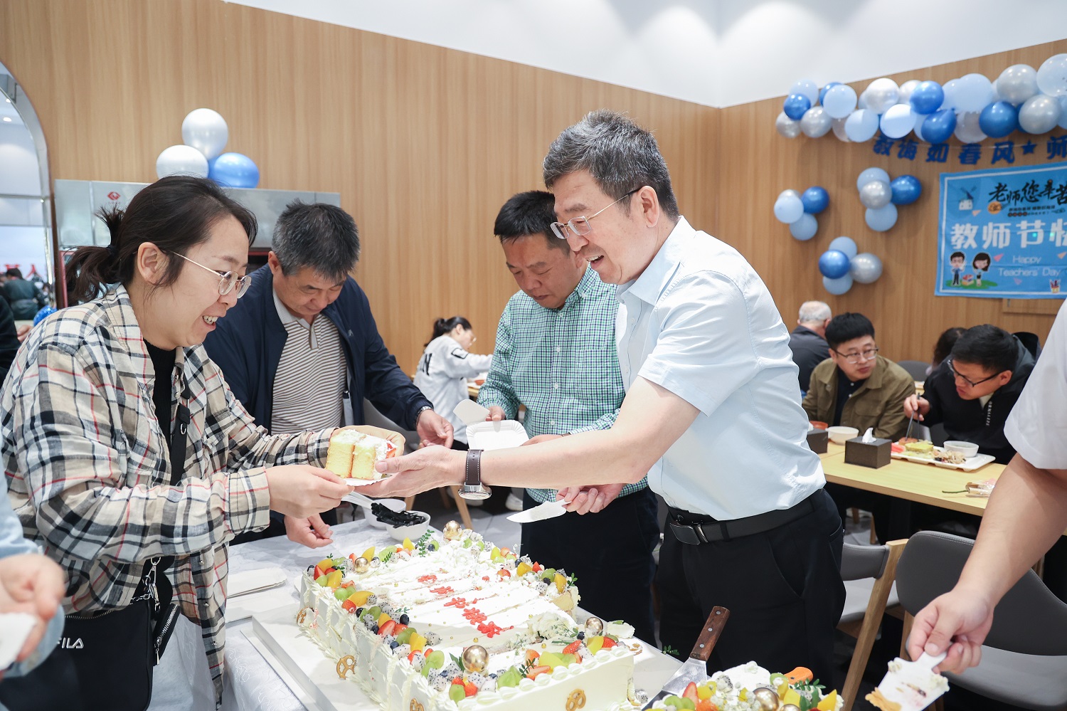 在秋風送爽、碩果累累的時節,我們迎來了第40個教師節。為弘揚尊師重教傳統美德,表達對全校教師的敬意和祝福,9月10日,后勤管理部聯合御東校區文興教職工餐廳開展了“師情花意·謝師恩”系列慶祝活動。校黨委常委、副校長張旻在教職工餐廳與教師們共慶節日,為就餐教師們切分節日蛋糕、表達祝福,餐廳工作人員為就餐教師們贈送鮮花。