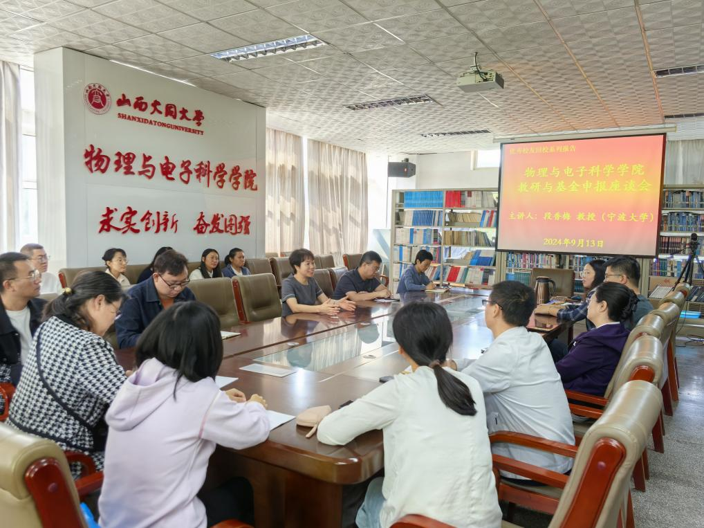 為推進有組織教研和科研,提高學院教師教學能力和基金項寫作質量,9月13日,物理與電子科學學院邀請全國凝聚態物理專業委員會委員、中國材料學會計算材料學分會委員兼副秘書長、浙江省物理學會理事、寧波大學物理科學與技術學院院長段香梅教授進行教研交流和基金申報指導專題講座。學院院長李懷繁教授主持講座,系主任、教研室主任、骨干教師及45歲以下教授、副教授參加。