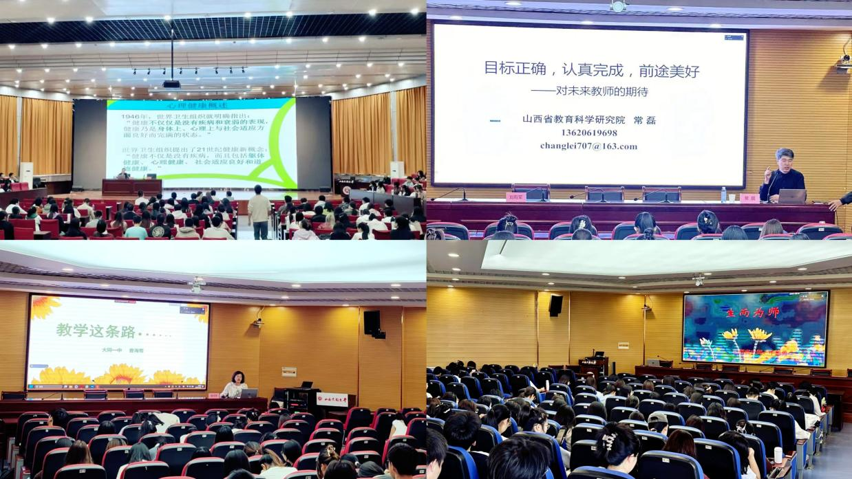 本次師范生培訓講座邀請5位優秀教師,大同市教育科學研究中心心理教研室主任張磊老師、山西省教育科學研究院質量檢測與評估中心副主任常磊老師、山西省特級教師大同一中高中部楊勇老師、山西省特級教師大同一中初中部年級主任曹海鶯老師和北岳中學教導主任宋建宇老師,主要從青少年思想狀況、個人素養發展和教師職業技能三方面著手,從青少年心理健康教育、自身的職業規劃與個人成長性格,愛好,特長等方面讓學生們對中學教師的工作有了更直觀、更深入的了解,強調了教師需要有創新理念、扎實的專業知識以便對學生進行高質量的培養。