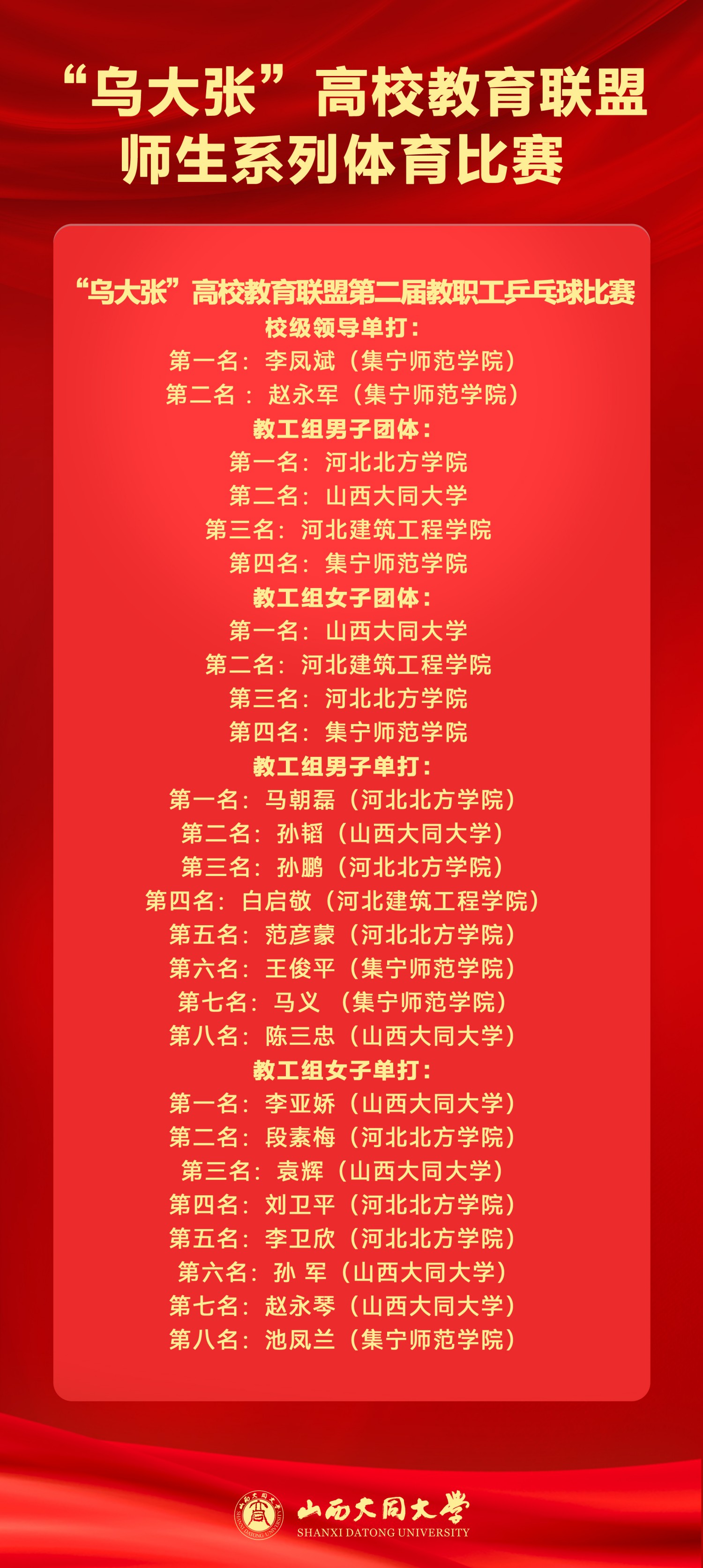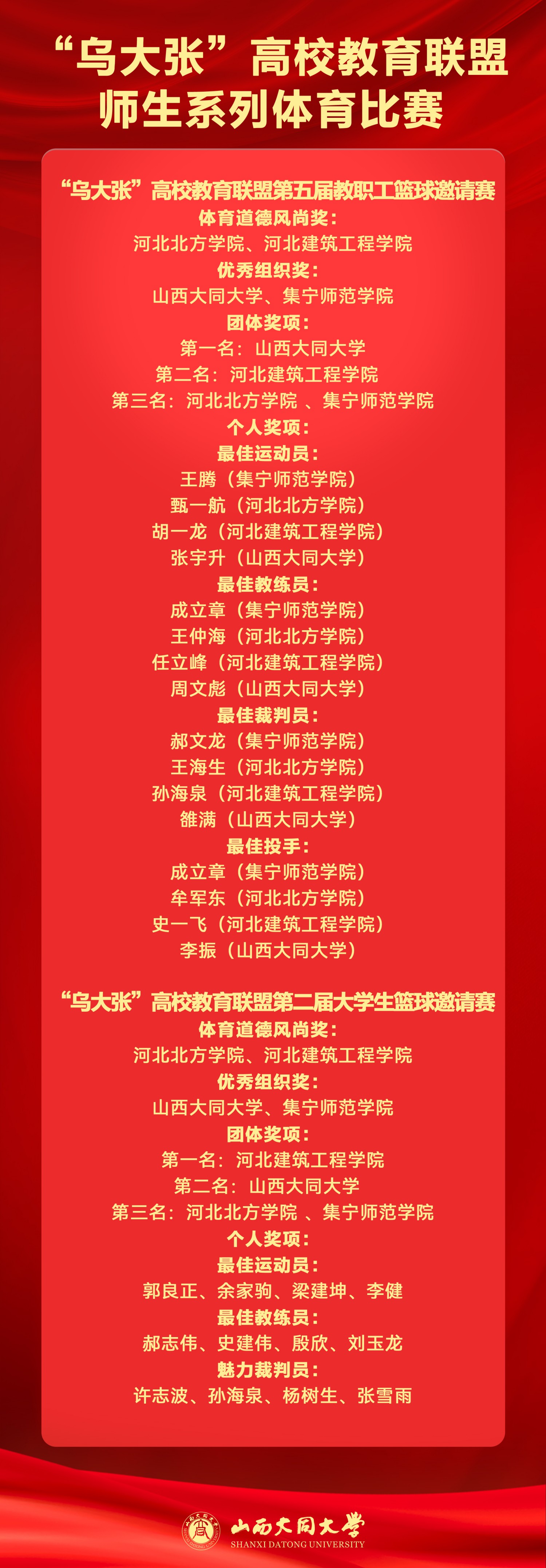 “烏大張”高校教育聯盟師生體育系列比賽獲獎名單