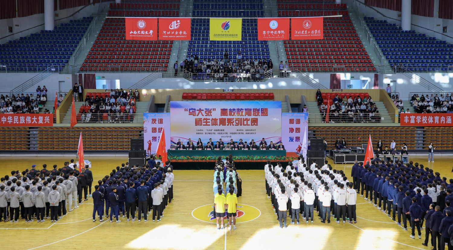 9月24日上午,開幕式在天翔體育館舉行。河北北方學院黨委書記牛春雨,黨委副書記、校長彭學君,集寧師范學院紀委書記趙永軍、副校長李鳳斌,河北北方學院副校長劉子剛、原副校長張輝,河北建筑工程學院副校長姚冰、副校長李敏、副校長趙海軍,山西大同大學黨委副書記、校長姚麗英,黨委常委、副校長張旻,黨委常委、副校長史水鴻,黨委常委、副校長馬軼明出席。各學校工會主席、體育學院院長及相關部門負責人參加。張旻主持開幕式。