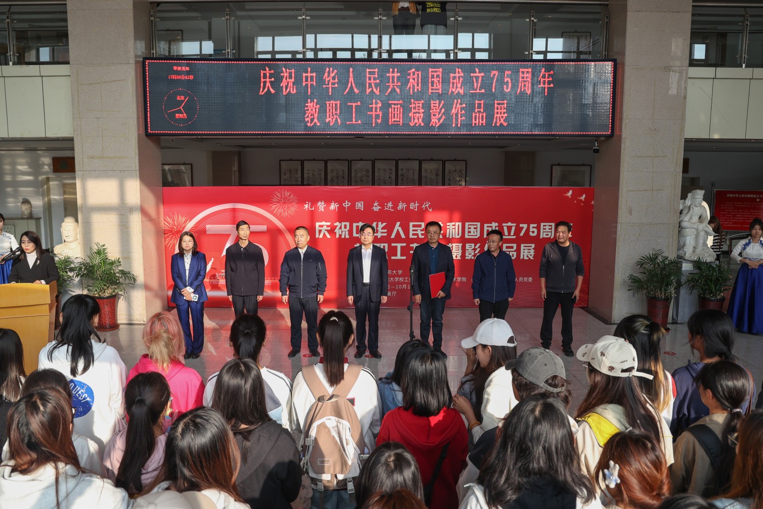 趙水民宣布“禮贊新中國(guó),奮進(jìn)新時(shí)代”慶祝中華人民共和國(guó)成立75周年教職工書(shū)畫(huà)攝影作品展開(kāi)幕。