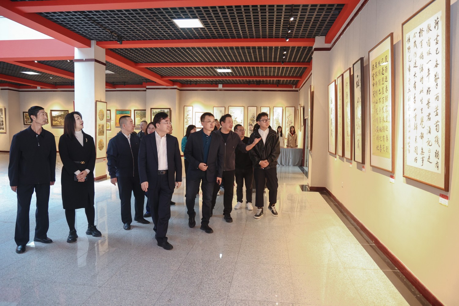 隨后,與會(huì)領(lǐng)導(dǎo)與師生一起參展。趙水民逐一欣賞每幅作品,認(rèn)真聆聽(tīng)講解,在一幅“祖國(guó)萬(wàn)歲”的作品前駐足,細(xì)細(xì)品讀其創(chuàng)作風(fēng)格和形式美感,并詢(xún)問(wèn)創(chuàng)作經(jīng)歷,高度肯定了創(chuàng)作者對(duì)祖國(guó)的禮贊。他強(qiáng)調(diào),通過(guò)這些作品,不僅能領(lǐng)略到同大教職工的文化藝術(shù)積淀,感受到他們對(duì)繁榮校園文化建設(shè)的熱情,更能感受到大家對(duì)美好生活的向往和追求,以及為實(shí)現(xiàn)中華民族偉大復(fù)興中國(guó)夢(mèng)而不懈努力的堅(jiān)定信念。他希望廣大教職工能夠繼續(xù)發(fā)揮藝術(shù)才華,創(chuàng)作出更多優(yōu)秀作品,為校園文化事業(yè)繁榮發(fā)展貢獻(xiàn)力量。