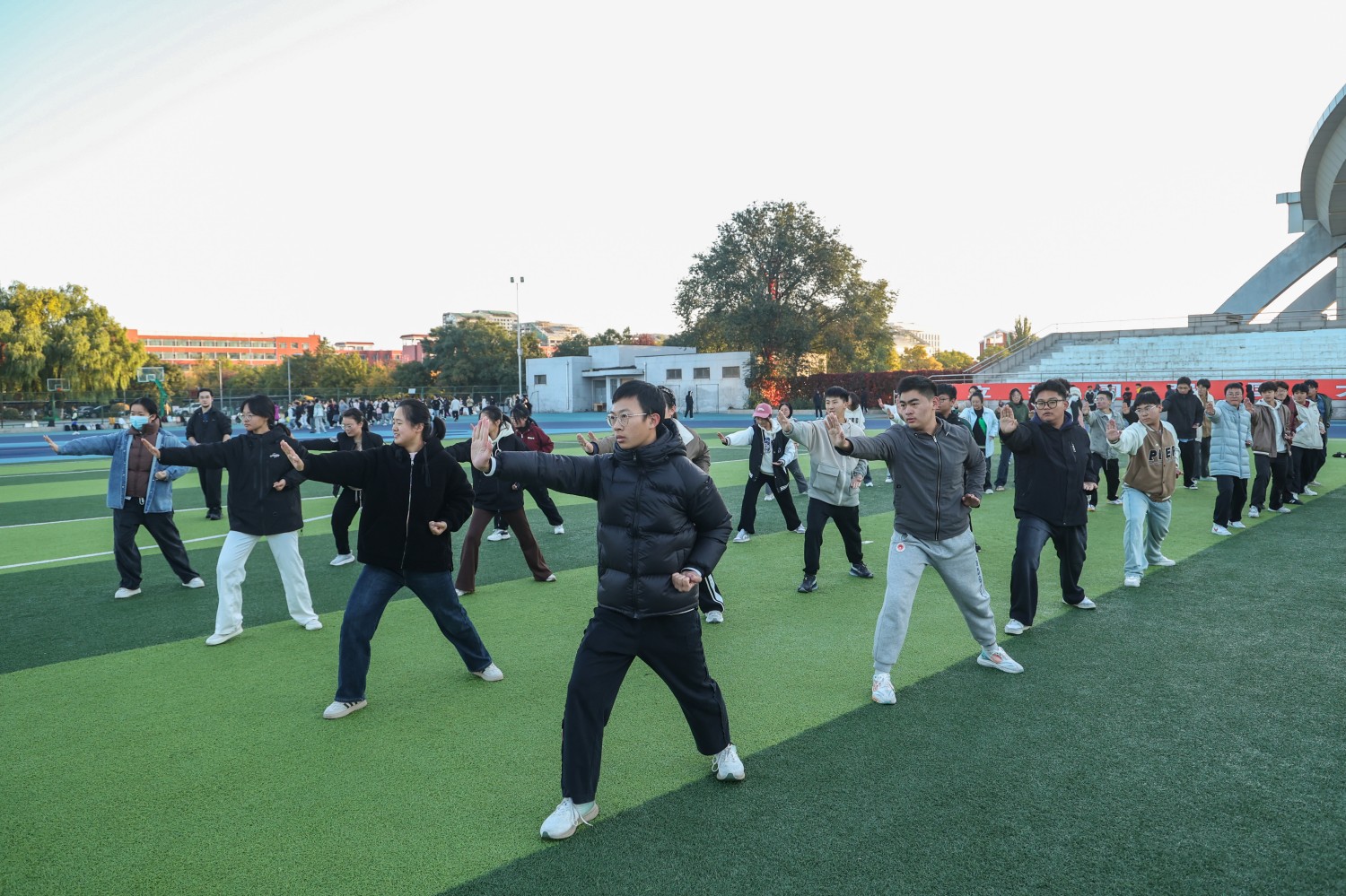 清晨的天翔體育場熱鬧非凡,早操活動如火如荼地開展著。趙水民與有關學院負責人就更好地開展學生體育活動進行交流,強調要堅持“教會、勤練、常賽”總體思路和“四年一貫制”體育教學,穩步促進學生運動能力的發展、健康行為養成和體育精神培養,引導學生在體育運動中享受樂趣、增強體質、健全人格、錘煉意志。