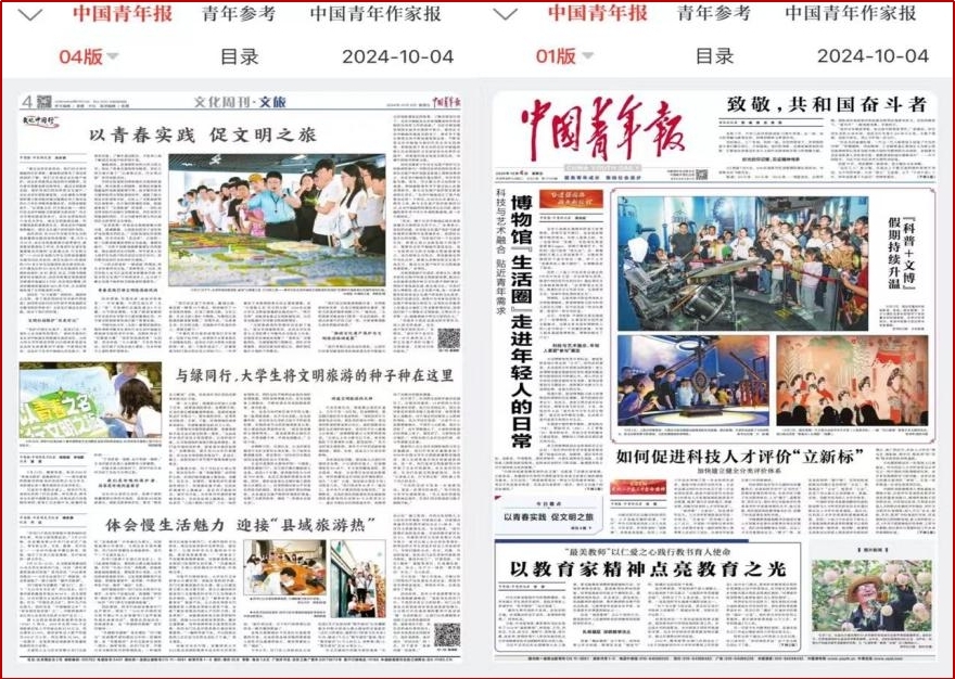 胡柏鶴拍攝的照片被《中國青年報》10月4日報紙04版采用