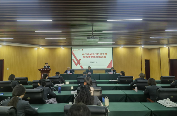 ? 10月25日上午,在文德樓一層會(huì)議室,由中國農(nóng)業(yè)銀行運(yùn)城市分行主辦,繼續(xù)教育學(xué)院承辦的“農(nóng)行運(yùn)城市分行行司干部綜合素養(yǎng)提升培訓(xùn)班”舉行開班儀式。農(nóng)業(yè)銀行運(yùn)城市分行副行長孫江濤、運(yùn)城農(nóng)銀人壽分公司經(jīng)理寇國宏、繼續(xù)教育學(xué)院院長徐忠出席開班儀式。