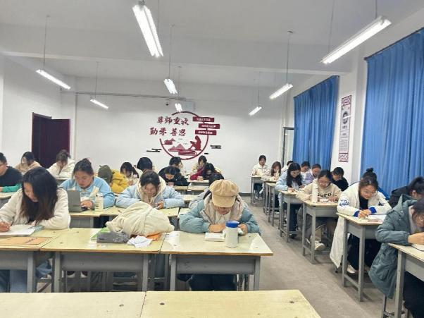 云岡學學院落實學生晚自習制度,確保班班有特色。每周日至周四晚,各班級以集中+分散、讀書+答疑、研討+交流的形式,組織學生上好晚自習,并進行每月一次晚自習情況總結。各班級分類做好自習安排并制定了相應組織方案,輔導員在晚自習期間深入教室督促檢查,幫助新生樹立自主學習意識,營造良好學習氛圍。