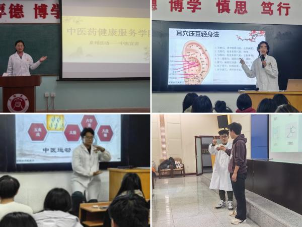 為了樹立學生們健康意識,樹立治未病理念,中醫藥健康服務學院宣講團按照院黨委學生工作計劃,在學院團委學生會志愿先鋒隊的配合下于10月21日至30日期間,先后走進醫學院、文學院、體育學院等18個學院進行中醫知識宣講及中醫外治體驗活動,為同大學子帶來了一場中醫養生之旅。