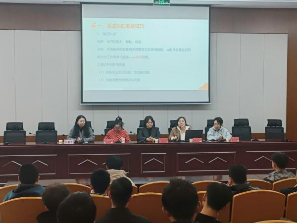 培訓以深入淺出的方式,系統地為同學們講解了面試前的各項準備技巧,內容涵蓋心理準備、材料準備以及面試問題的預設與應對等多個方面。模擬面試環節,具有豐富就業指導經驗的老師們擔任模擬面試官,為同學們營造了一個真實而緊張的面試氛圍。過程中同學們與指導老師深入交流,共同探討面試中可能遇到的各種問題及應對策略。