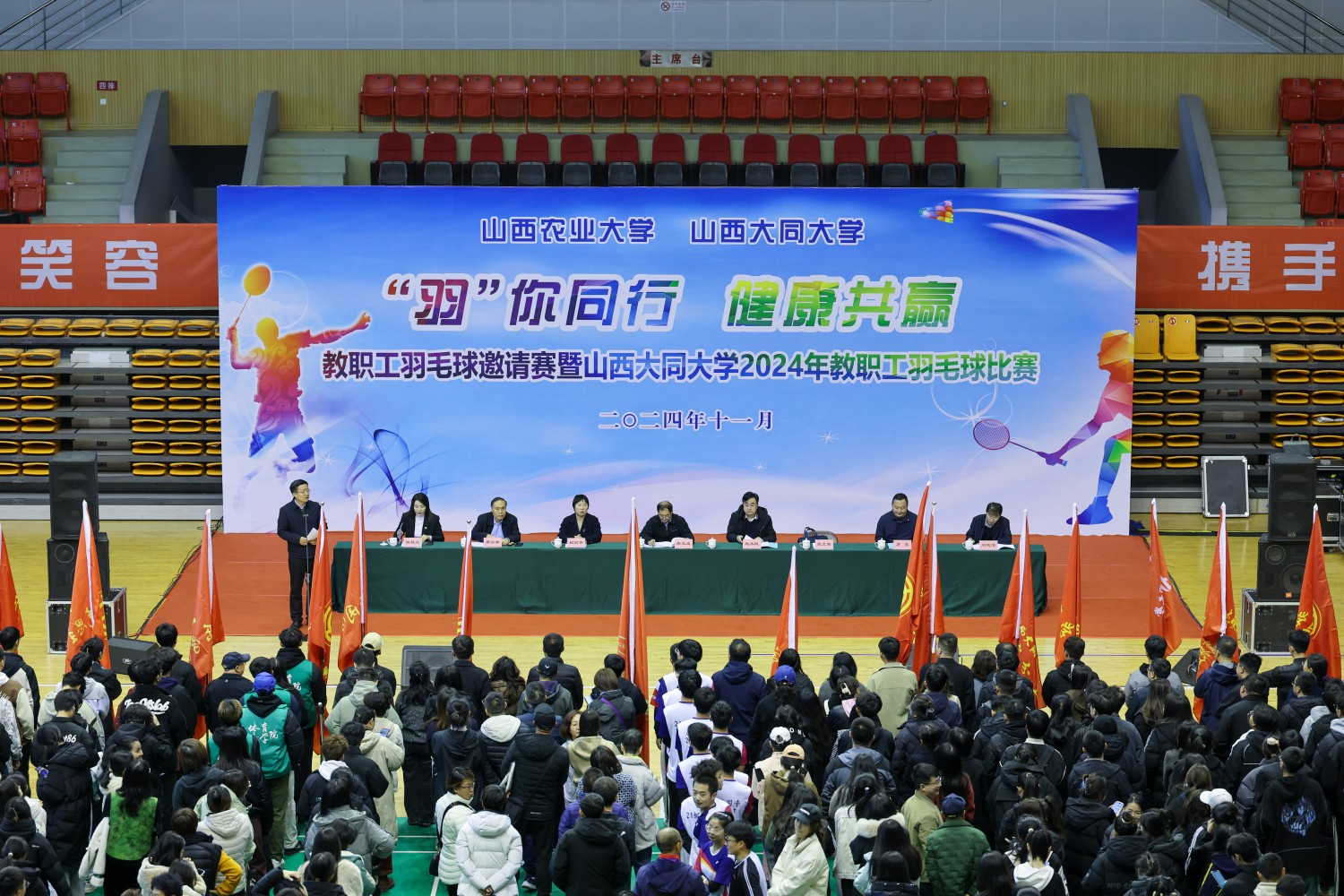 為促進校際交流與合作,推動全民健身,豐富校園文化,展現教職工風采,11月15日,山西農業大學、山西大同大學“‘羽’你同行健康共贏”教職工羽毛球邀請賽暨山西大同大學2024年教職工羽毛球比賽開賽儀式在天翔體育館舉行。山西農業大學黨委書記廖允成,山西大同大學黨委書記趙水民,黨委副書記、校長姚麗英,黨委副書記張衛國出席。兩校辦公室、工會等相關部門負責人參加。張衛國主持儀式。