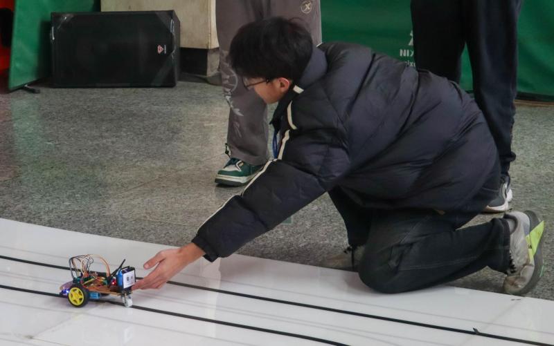 此次競賽包含“智能循跡小車”和“智能機械臂”2個賽項,選手們熟練地操作著自己精心設計的比賽作品,在賽道上激烈對抗。現場氣氛緊張而熱烈,觀眾們不時為選手們的精彩表現熱烈鼓掌。每一個精彩瞬間都凝聚著選手們的智慧和汗水,每一次激烈對抗都展現著科技的魅力和力量。