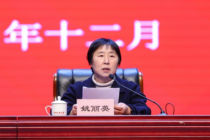 姚麗英在主持大會時強調(diào),全體師生要認真貫徹落實大會精神,堅持立德樹人,始終圍繞學生、關(guān)照學生、服務學生,秉承“厚德、博學、慎思、篤行”的校訓精神,充分發(fā)揮模范帶頭作用,努力譜寫育人工作新篇章,為建設(shè)高水平應用型大學做出新的更大貢獻。