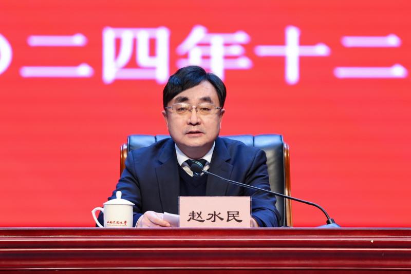 趙水民殷切寄語全體學生,希望同學們堅定理想信念,做有信仰、有追求的新時代青年;勤奮學習,勇于創(chuàng)新,做有知識、有本領(lǐng)的新時代青年;錘煉品德修為,做有道德、有擔當?shù)男聲r代青年;積極參與校園文化建設(shè),做有活力、有品位的新時代青年,努力以永不懈怠的精神狀態(tài)、永不停滯的前進姿態(tài),不斷展現(xiàn)新作為、取得新成績。