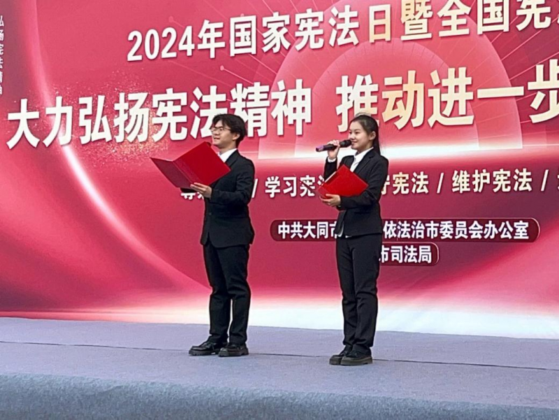 今年12月4日是我國第十一個“國家憲法日”,12月1日至7日是第七個“憲法宣傳周”,今年“憲法宣傳周”主題為“大力弘揚憲法精神,推動進一步全面深化改革”。學校積極響應、統籌安排,由法學院牽頭,與大同市人大常委會、大同市法學會通力合作,開展“憲法宣傳周”普法系列活動,將憲法晨讀、主題班會、法律咨詢、法治小游戲、模擬法庭、普法問卷調查、普法課堂、法治元素節目表演等融入其中,以接地氣的形式進行普法宣傳。