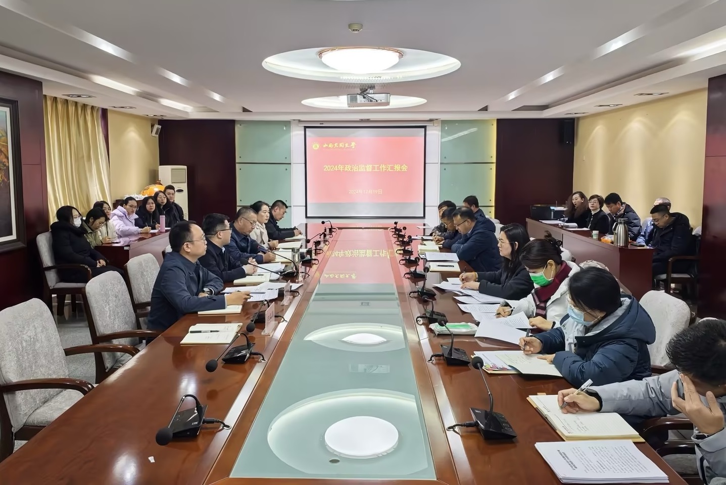 ? 為深入學習貫徹習近平總書記重要講話重要指示精神,推動政治監督具體化精準化常態化,12月19日,校紀委在行知樓14層會議室召開2024年政治監督工作匯報會。校黨委常委、紀委書記、監察專員康永征出席并講話。政治監督檢查組組長及全體成員參加,校紀委全體紀檢監察干部列席會議。