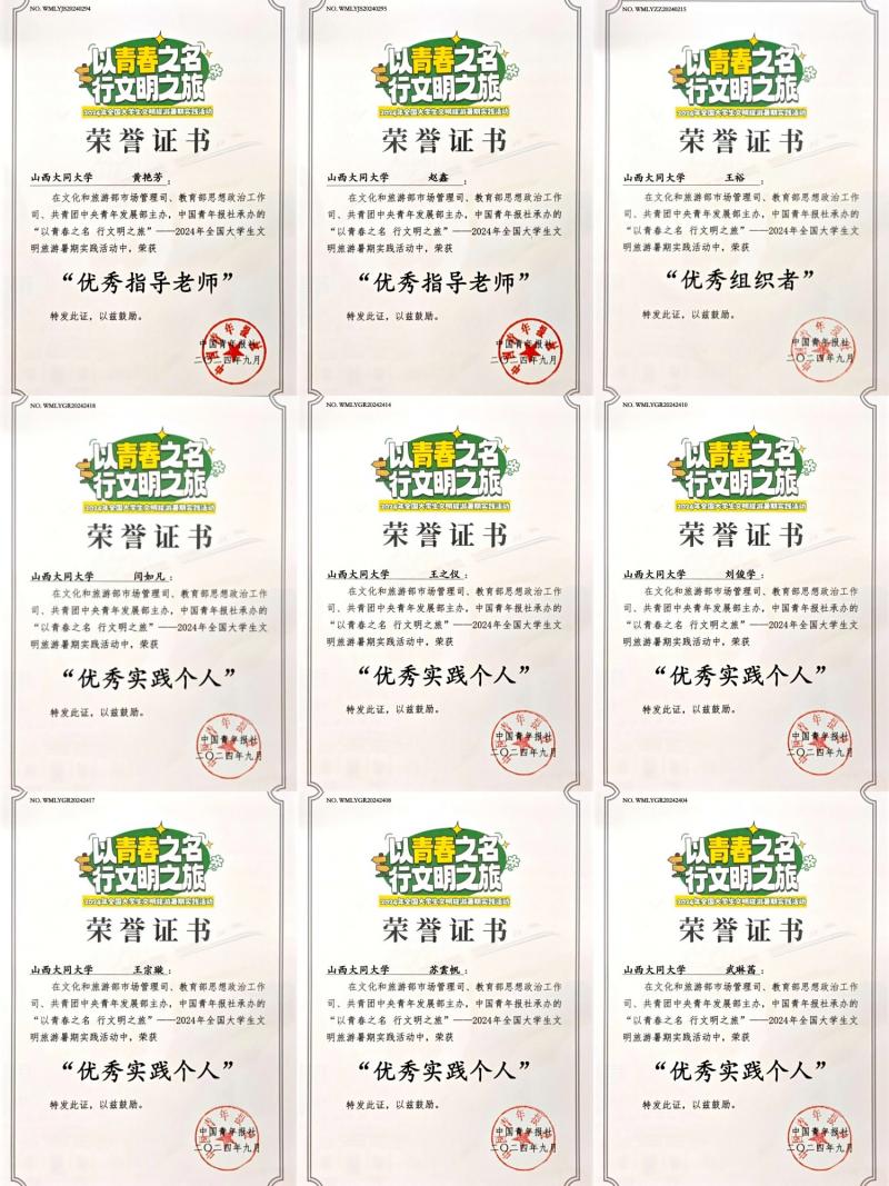 近日,由我校學生組成的青春文旅宣講團成功入選全國大學生文明旅游暑期實踐活動展示,我校大學生社會實踐工作再獲佳績。其中,黃艷芳、趙鑫榮獲“優秀指導老師”,王裕同學榮獲“優秀組織者”,閆如凡等16名同學榮獲“優秀實踐個人”。