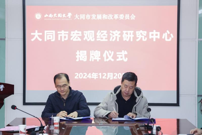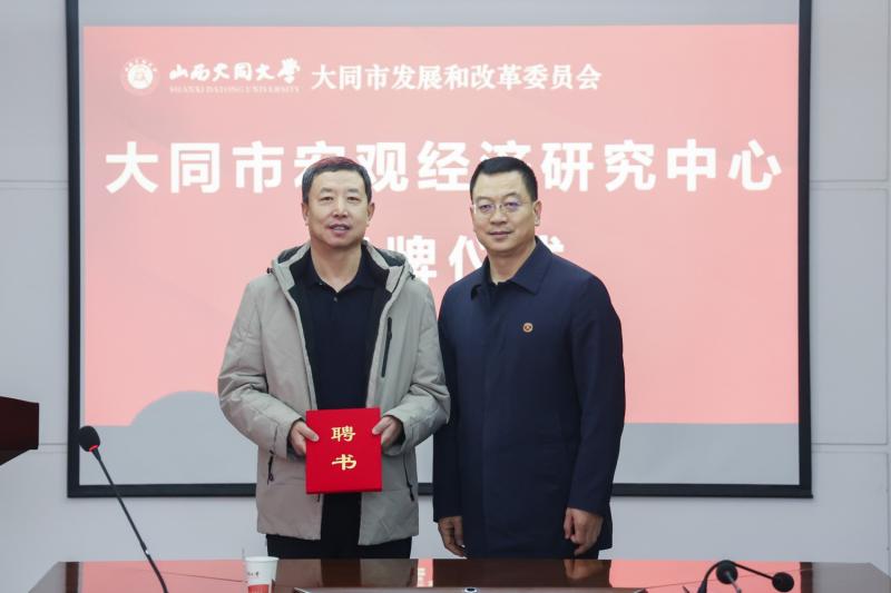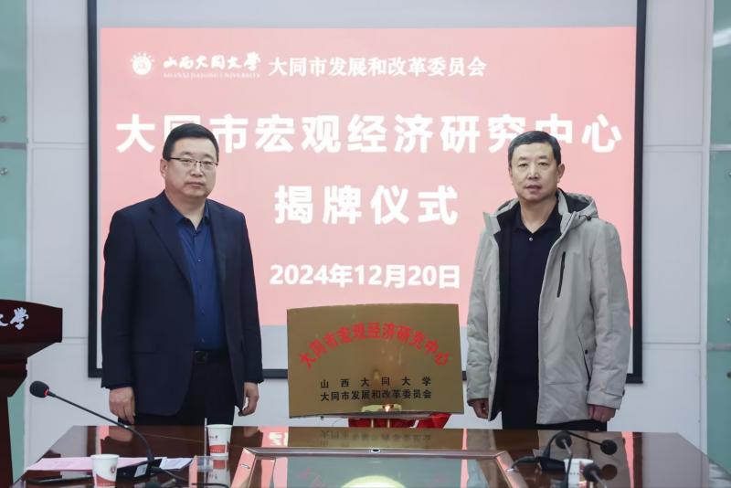 12月20日,大同市宏觀經(jīng)濟(jì)研究中心成立暨揭牌儀式在我校行知樓14層會(huì)議室舉行。校黨委常委、副校長史水鴻,大同市發(fā)展和改革委員會(huì)二級(jí)調(diào)研員李秉坤出席。