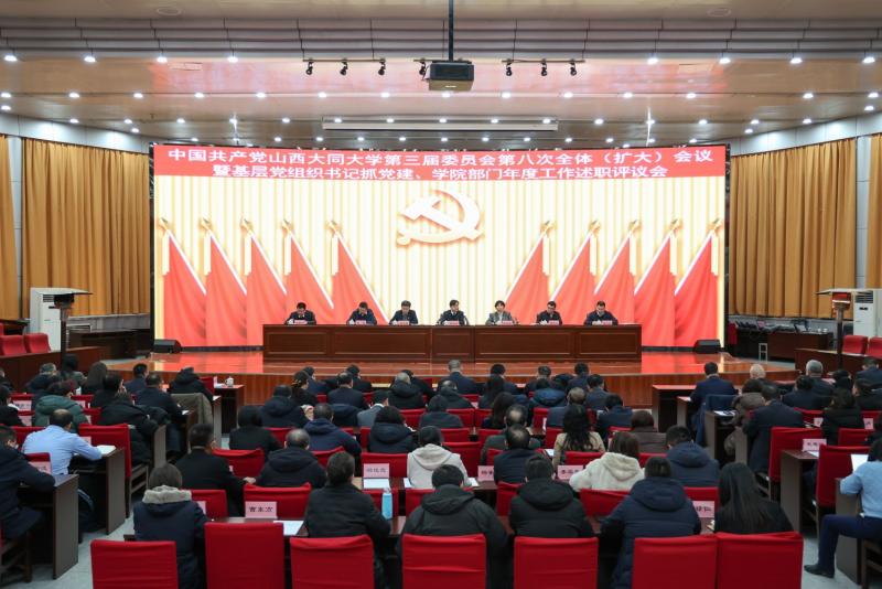 1月8日,中國共產黨山西大同大學第三屆委員會第八次全體(擴大)會議暨基層黨組織書記抓黨建、學院部門年度工作述職評議會在慎思樓報告廳召開。會議由校黨委常委會主持。會議聽取和審議了校黨委書記趙水民受校黨委常委會委托作的工作報告。校黨委副書記、校長姚麗英作假期重點工作安排。全體校黨委常委出席,校黨委委員參加,副處級以上干部、“兩代表一委員”、離退黨支部書記、離退人員代表列席會議。