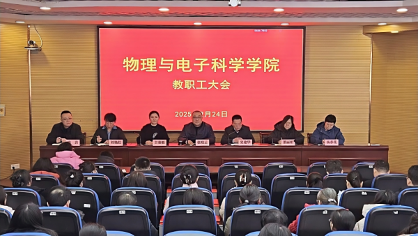 ? 為進一步統一思想,理清思路,確保新學期各項工作有序進行,2月24日上午,物理與電子科學學院召開2025年春季開學全體教職工大會,學院領導班子成員及全體教職工參加會議。會議由院黨委副書記吉秦雁主持。
