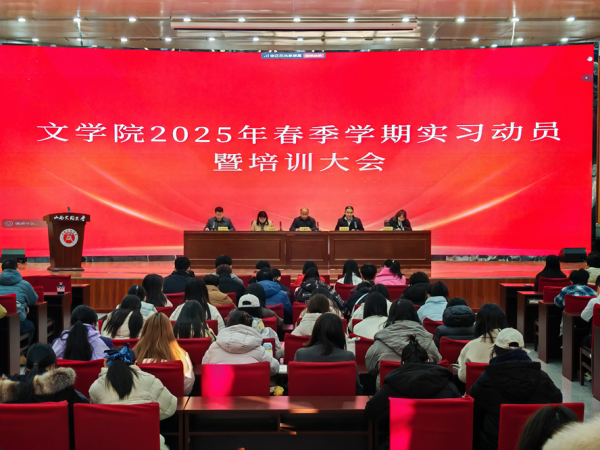 ? 近日,文學院在慎思樓報告廳召開2025年春季學期實習動員暨培訓大會,本次會議線上線下同步進行,邀請大同市教育科學研究中心高中語文教研員、山西省教學能手、山西省優秀班主任麻文老師做專題培訓,院系領導、指導教師、實習班級輔導員以及全體2025屆實習生參加會議。