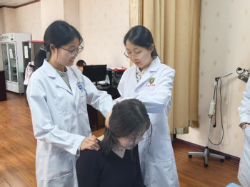 四樓的針灸推拿實訓室中,中醫學院志愿者們通過推、拿、按、揉中醫特色療法,幫助師生們放松肌肉,疏通經絡。體驗結束后,同學們對中醫的神奇療效贊嘆不已,不少同學還表示,這次義診讓他們對中醫產生了濃厚的興趣。