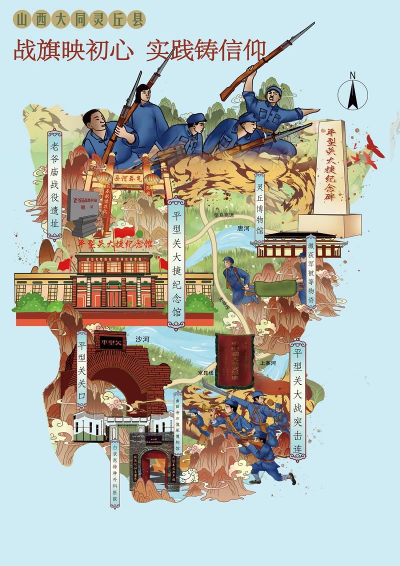 張俊團隊多次赴我省“大思政課”實踐教學基地——平型關大捷紀念館參觀學習、深入調研,反復推敲相關材料,最終打磨出《“戰旗映初心 實踐鑄信仰”手繪地圖》。手繪地圖通過8個場景描繪了黨領導下的人民軍隊獲得抗日戰爭首次勝利的來之不易,展現出扎實的專業素養和創新的設計思維。